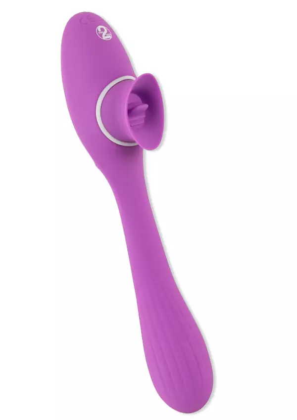 2 Function Vibraattori on uskomaton orgasmikone! Haluatko hyväilyä pikkuruisella kielellä vai tehokkaan vibran sisääsi? Vai miten olisi molemmat yhtäaikaa? 2 Function vibraattorissa on taipuisa ja voit taivuttaa sen juuri sinulle sopivaan asentoon.Pinta tuntuu ihanan silkkiseltä. Pikkuruinen kieli liikkuu kymmenellä eri noepudella ja hieromasauvan vibraattori sykkii jä värisee myöskin kymmenellä eri rytmillä. Molempia toimintoja voit säätää erikseen. Hyvät ja helppokäyttöiset nappulat. 2 Function vibraattorion ladattva ja tarvittava USB latausjohto tulee tietenkin mukana.