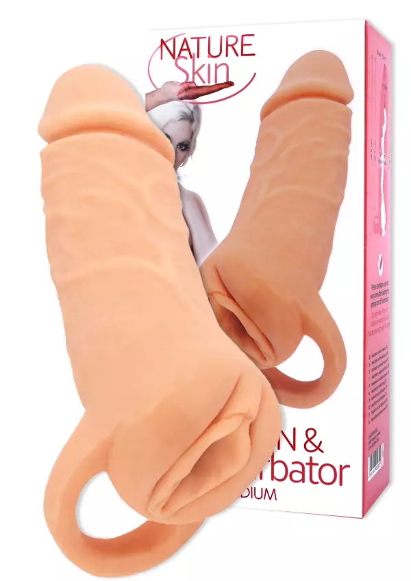 2in1 Penisjatke ja Masturbaattori tekee sinusta isomman ja tuntuu hyvältä!! Penisjatkeen avulla saat lisää pituutta noin 3cm. Mutta mikä parasta, tämä jatke myös tuntuu hyvältä ja voit käyttää sitä myös masturbaattorina. Todella pehmeä, aiota ihoa muistuttava materiaali ja kivesten taakse tulevan renkaan ansista se pysyy myös hyvin paikoillaan. Penisjatke muistuttaa aitoa penistä, paitsi tunnelin suu, joka on muotoiltu vaginaa muistuttavaksi. Tunneli on tehokkaasti kuvioitu nystyröillä ja poimuilla, et voi olla pitämättä siitä! 2in1 Penisjatke ja Masturbaattori toimii niin pariskunnilla kuin sinkuillakin.
