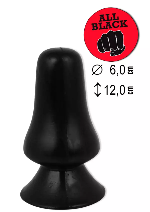 Tylppäkärkinen All Black Anuskiihotin, jonka pohjassa imukuppi. Valmistettu Belgiassa pehmeästä kumiseoksesta. Materiaali on hygieeninen ja helppo pitää puhtaana. All Black dildojen kanssa voit käyttää kaikkia liukuvoiteita, mutta suosittelemme vesiliukoista liukuvoidetta, esim. kotimainen Be Happy. Pituus 12cm Halkaisija 60mm Materiaali vinyyli