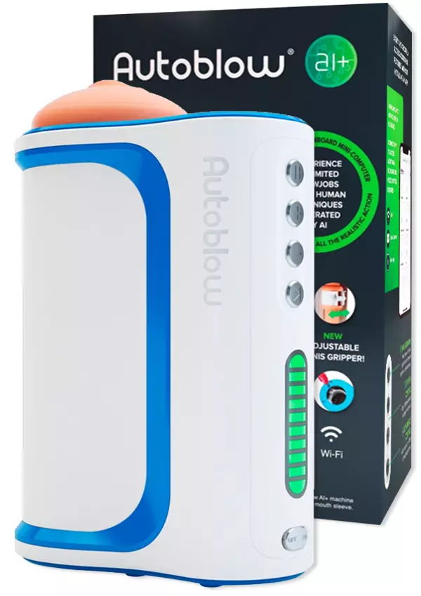 Autoblow A.I. Plus masturbaattori on ehkäpä maailman parhain suihinottokone! Tässä Autoblown uudessa versiossa on mahtavia lisäominaisuuksia, kuten esim. voit itse luoda omia suihinottotekniikoita. Lisäksi siinä on ääni- ja etäohjaus. Mutta mikä parasta, laitteen ääni on hiljaisempi kuin edellisessä versiossa sekä pystyt säätämään sisuksen tiukkuutta 47 mm:stä 53 mm:iin ruuvimeisselillä, oletuksena on 50mm. Autoblow AI plus käyttää hyväkseen keinoälyä ja laitteen sisälle asennettu tietokone jäljittelee oikeaa suihinottoa todella aidosti. Tieteokoneen ohjelmointia varten on analysoitu satoja suihinottoja ja kone toistaa satunnaisesti sille opetettuja tekniikoita. Peniksesi saa kyytiä kymmenellä eri nopeudella. Laitteessa on myös ns. taukopainike, jolla saat sen pysähtymään ja käynnistymään hetkessä. Tämä ominaisuu on loistava, kun haluat viivyttää laukeamista.