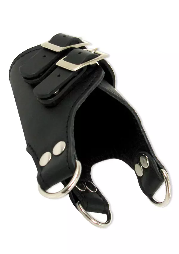 Pehmeästä nahasta valmistettu ja huolella viimeistelty penisremmi, jossa kolme lenkkiä esim. painoja varten. Asetetaan kivesten ympärille.