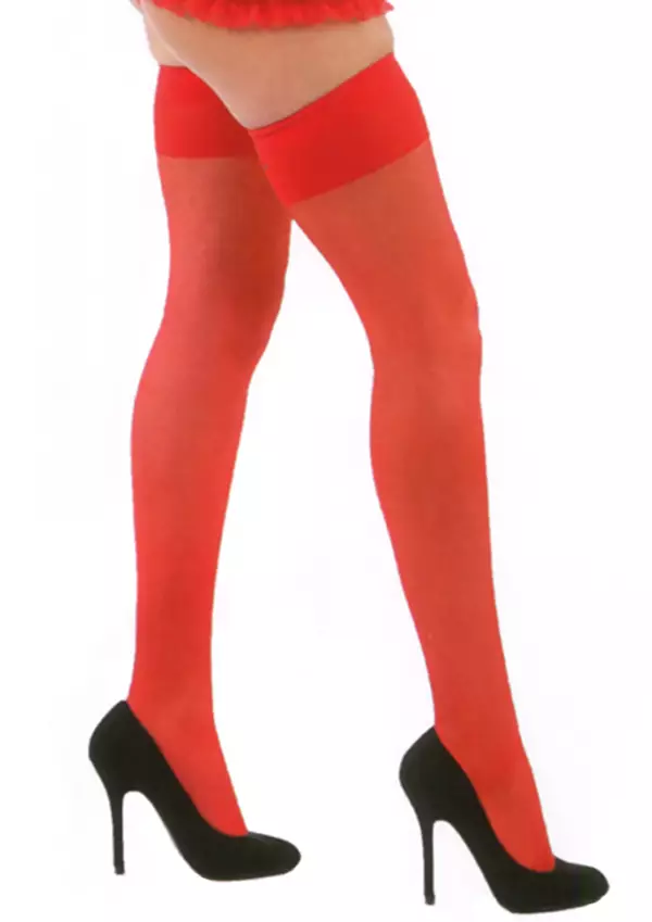 Classified punaiset sukat ovat edulliset ja ilman turhia kikkailuja. Käytetään sukkanauhaliivien kanssa. Jokaisen naisen vaatekaapin perustuote. 15 denieriä. Yksi koko.