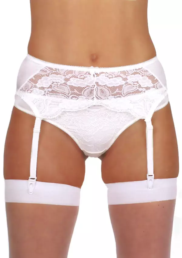 Classified valkoinen sukkanauhaliivi tulee olla jokaisen naisen vaatekaapissa. Klassinen sukkanauhaliivi kauniista pitsistä. Ei hakasia taikka nappeja, pujota helposti päällesi. Neljä sukkanauhaa. Koot S, M, L, XL