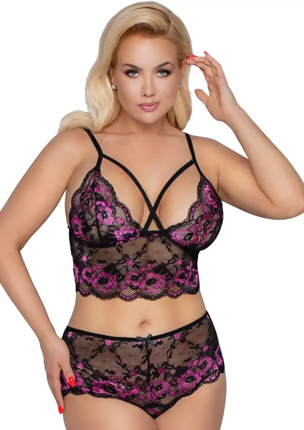 Cottelli Curves alusasusetti eroottisiin hetkiin! Upeasti hohtavaa pinkkiä ja mustaa pitsiä, tämä yhdistelmä saa sinut hehkumaan. Miellyttävän tuntuinen ja joustava materiaali. Rintaliiveissä säädettävät olkaimet, ei hankalia hakasia takana.