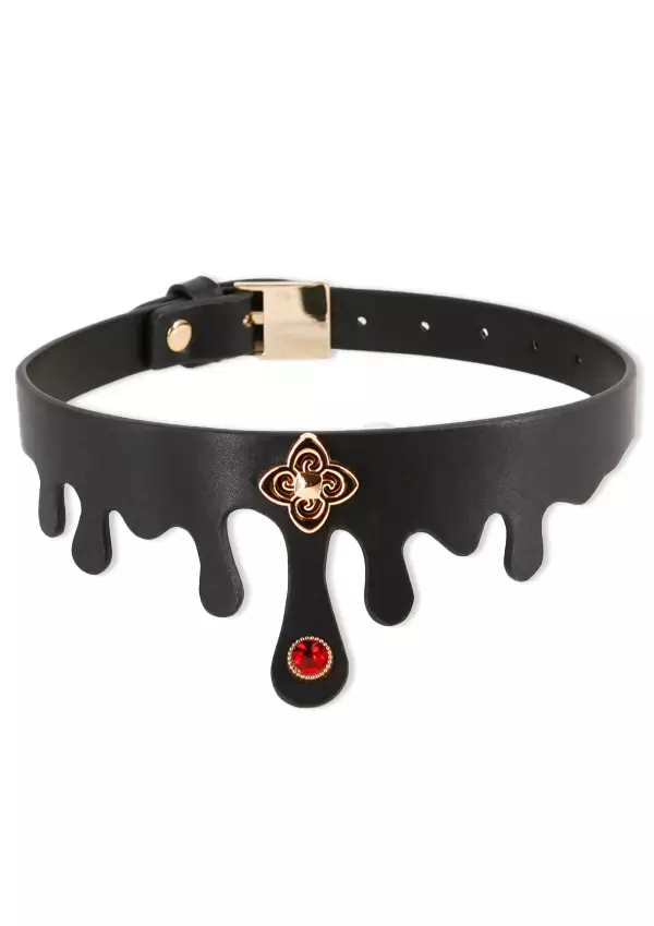 Fetish & Fashion Elvira Kaulapanta täydentää tyylisi! Upea asuste, jossa kullanväriset yksityiskohdat sekä "rubiini". Säädettävä koko, kaulan ympärysmitta 29 - 44,5cm