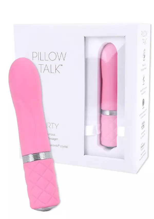 Pillow Talk Flirty vibraattori on tyttöjen uusi suosikki ja tästä luxusvibrasta haluat nauttia päivästä toiseen ja se kulkee vaikka aina mukanasi! Upeasti hohtava Swarovskin kristalli ja herkullinen väri miellyttää taatusti! Pehmeä, ihanan silkkinen pinta on valmistettu laadukkaasta silikonista. Vibraattorin varsi taipuu ja hyväilee muotojasi. Kaunis ulkomuoto, helppokäyttöisyys ja laadukkaat materiaalit tekevät Pillow Talk vibraattorista suosikkisi! Pillow Talk Flirty on myös todella tehokas, vaikka vibraattori onkin minikokoinen!