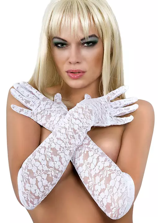 Seksikkäät käsineet pehmeästä pitsistä. Yksi koko. Materiaali 90% nylon, 10% elasthan.