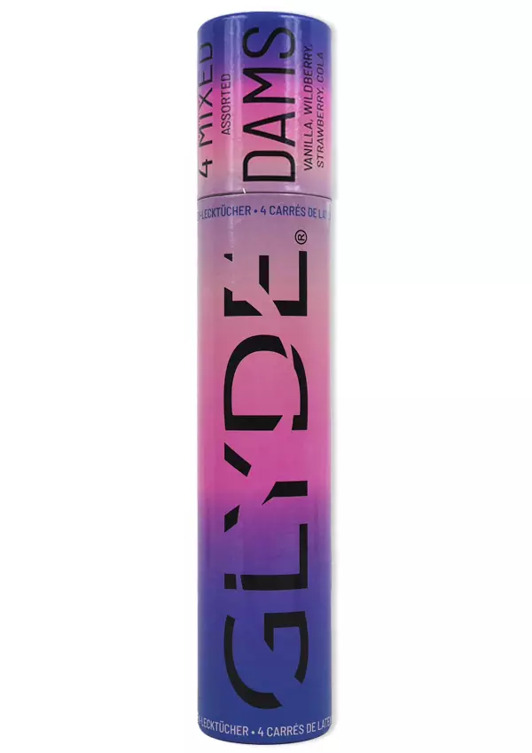 Glyde Dams on suuseksisuoja, eli eräänlainen nuolemisliina. Käytä suuseksisuojaa suuseksin (vaginaalisen ja anaalisen) yhteydessä. Suuseksisuojat toimivat mekaanisina suojina sukupuolitauteja vastaan suuseksin yhteydessä. Koska liinat on valmistettu ohuesta lateksista, vastaanottaja ei tunne suojaa käyttäessään suurta eroa. Käytä liinaa vain yhdeltä puolelta. Älä käännä liinaa kesken kaiken, äläkä käytä samaa liinaa useaan kertaan. Pakkauksessa neljä liinaa, joissa makuina vanilja, mansikka, metsämarja sekä cola. Suuseksisuojat on valmistettu 100%:sti vegaaniystävällisin metodein.