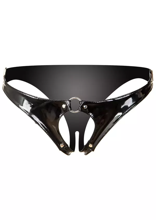 Honour PVC Avopikkuhousut paljastavat kaiken! Soljilla säädettävä ympärysmitta. Noin 10 cm leveä takaosa. Edessä koristeena metallirengas, johon voit kiinnittää vaikka ketjun. PVC pinnoitettu kangas kiiltää upeasti ja tuntuu mukavalta ihoa vasten. PVC asut on helppo pitää puhtaana. Pinnan voi pyyhkiä kostealla liinalla tai pese vaate käsin haaleassa vedessä miedolla pesuaineella. Ripusta kuivumaan, mutta vältä lämpöä tai auringon paistetta.