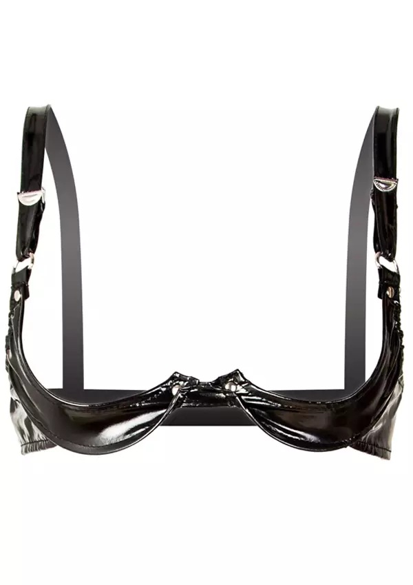 1/4 -kuppi rintaliivit, jotka nostavat rintoja kauniisti. Säädettävät olkaimet ja takana hakaset. Kaarituet. Hieman joustava takaosa PVC pinnoitettu kangas kiiltää upeasti ja tuntuu mukavalta ihoa vasten. PVC asut on helppo pitää puhtaana. Pinnan voi pyyhkiä kostealla liinalla tai pese vaate käsin haaleassa vedessä miedolla pesuaineella. Ripusta kuivumaan, mutta vältä lämpöä tai auringon paistetta.