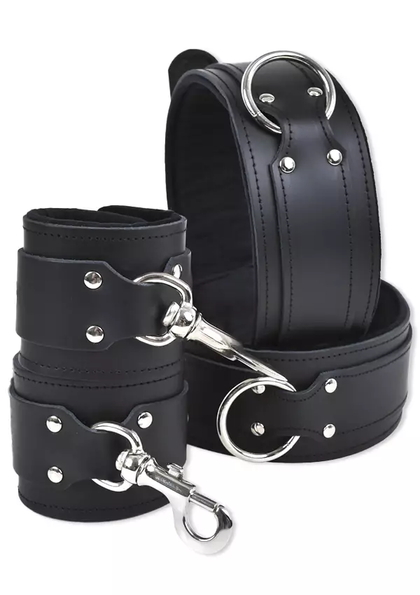 JoyFactory Käsi-Reisi Kahleet kovaan käyttöön! Näillä kahleilla saat kädet pysymään tiukasti reisiä vasten. Sisäpuoli on sametilla pehmustettu, joten käyttö on miellyttävää pitkienkin sessioiden ajan. Voit myös yhdistellä kahleita mielesi mukaan mihin tahansa kahleisiin ketjuilla tai vaikka ristikkoremmillä. Sekä käsi- että reisikahleissa säädetävä koko. Setissä kaksi reisikahletta sekä kaksi käsikahletta.