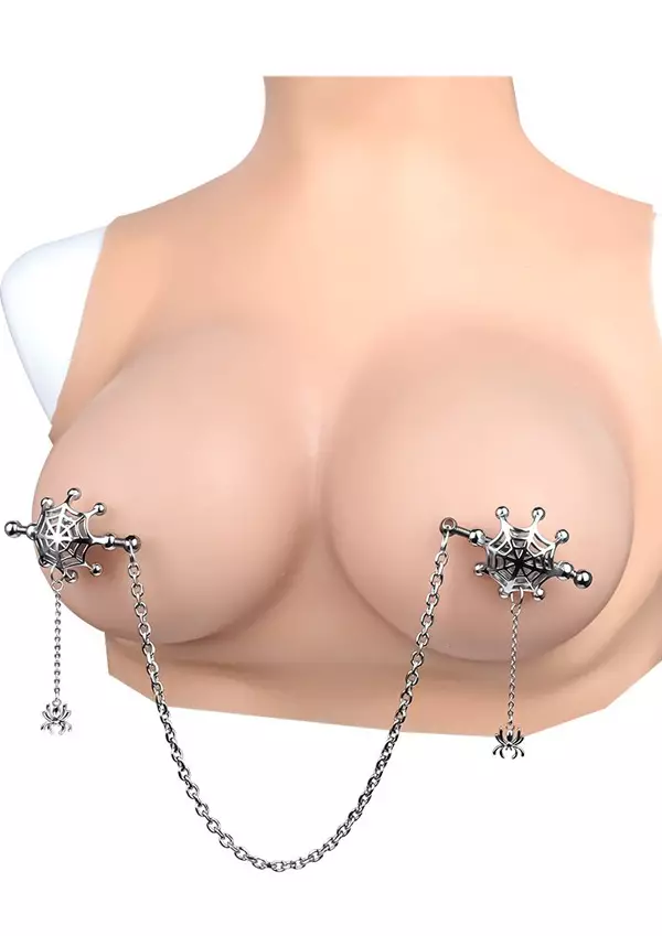 Kiotos Spider Web Nännipuristimet tarjoavat myös visuaalista nautintoa. Kuppimainen hämähäkin verkko, jonka sisällä säädettävät nännipuristimet. Nänniä vasten tulevat metalliset, hieman nystyröidyt, noin 10mmx5mm levyt. Puristusta on helppo säätää.