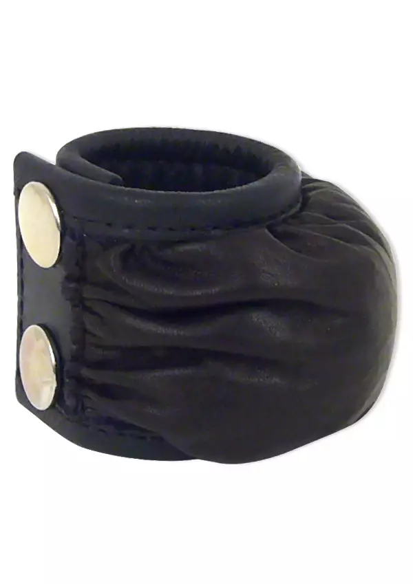 Nahkainen kivespaino. Leveys 5cm ja paino 450g. Kiinnitetään painonapeilla.
