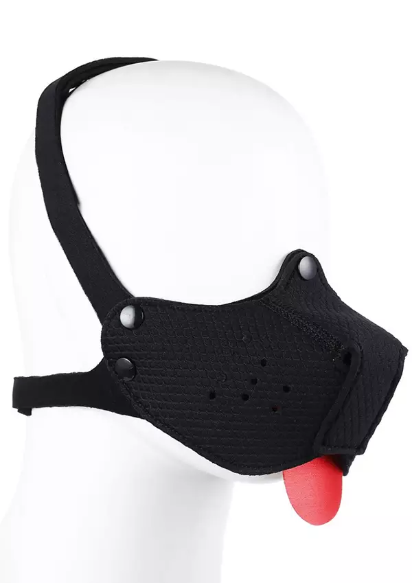 Koiran Kuono Maski fetissileikkeihin. Kevyt, neopreenista valmistettu naamio, jonka läpi on helppo hengittää. Naamio istuu päähäsi napakasti hyvien säätöjen ansiosta. Sekä kieli että kuono ovat irroitettavia.