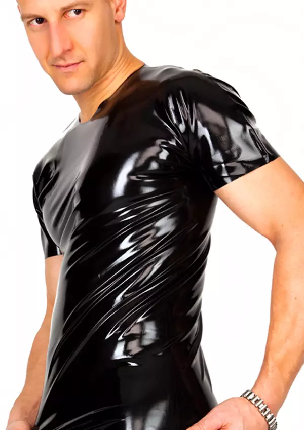 Lateksipaita naisille ja miehille. Lyhyet hihat ja O-pääntie.