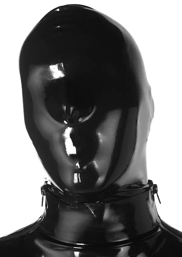 Lateksihuppu peittää sekä silmät että suun. Vain peinet nenänreiät.