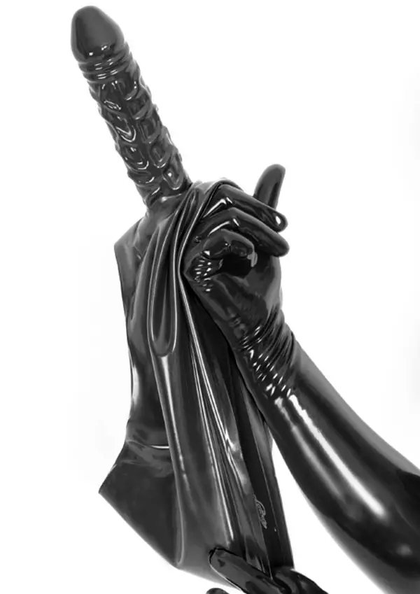 Lateksiset miesten housut kiinteällä, ontolla peniksellä.