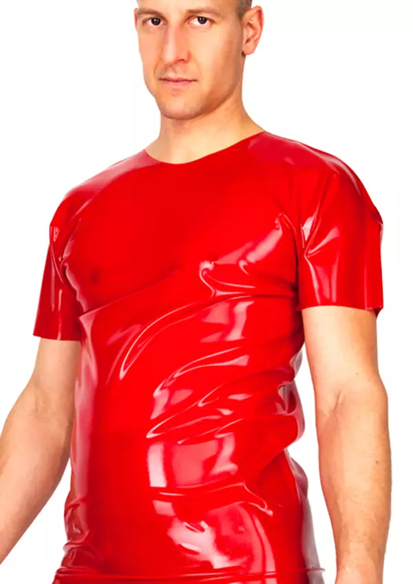 Lateksipaita naisille ja miehille. Lyhyet hihat ja O-pääntie.