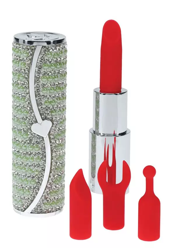 Loveline Huulipuna Vibraattori saa nautinnosta hieman ylellisempää! Huulipunaa muistuttava vibraattori, jossa neljä erilaista vaihtopäätä. Kaikki päät ovat pehmeää silikonia ja voit helposti vaihdella niitä halusi mukaan. Vibraattori seykkii ja värisee kymmenellä eri rytmillä, löydät varmasti orgasmin tuovan vaihtoehdon! Loveline Huulipuna Vibraattorin kotelo on todella kaunis ja upeasti kimalteleva. Pohjassa korumaiset ketjut, jotka voit halutessasi irroittaa. Tätä vibraattoria voit huoletta kuljettaa käsilaukussa ja pääset nauttimaan missä ja milloin vain. Irroita vaihtopäät pesua varten, älä kastele koko vibraattoria.
