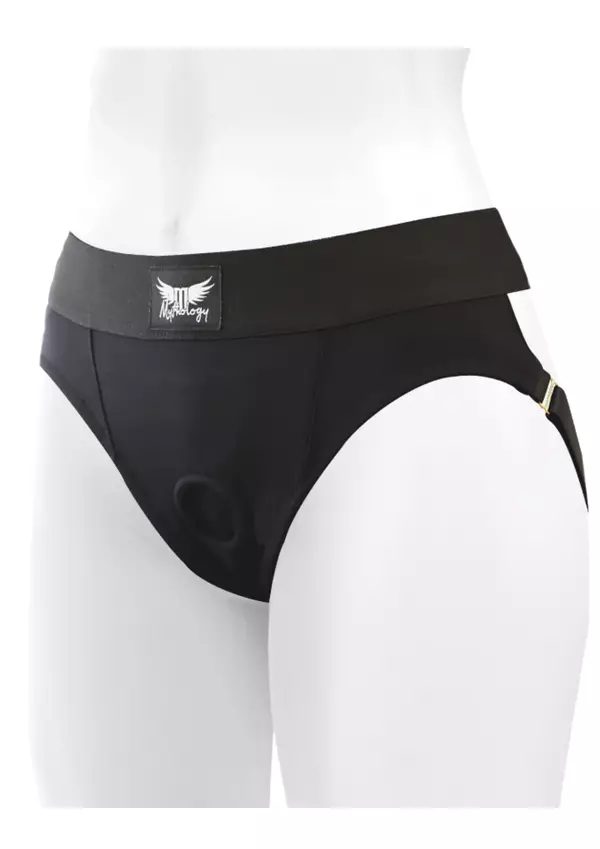 Mythology StrapOn Housut ovat tyylikkät ja kestävät, silti edulliset! Miellyttävän tuntuinen materiaali ja leveä kuminauha vyötäröllä. Pakaroiden alapuolella olevat hihnat ovat säädettävät. StrapOn housujen edessä on aukko dildoa varten ja aukon halkaisija on noin 40mm. Lisäksi housuihin on mahdollista sujauttaa pieni vibraattori klitoriksen kohdalle taikka kiinnittää vibra magneetin avulla. Pese housut miedolla lämmöllä käsin taikka koneessa pesupussia käyttäen. Yksi koko, joka sopii S-L kokoisille.