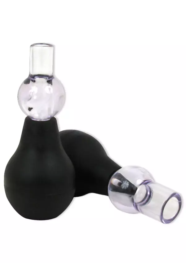 Kaksi tyhjiöpumppua nännien imemiseen. Tyhjiö saa nännin turpoamaan ja herkistymään. Kaksi erikokoista pumppua. Mukana 8, neljää eri kokoa olevaa kumirengasta, jotka voit pujoittaa pumpun päältä nännin tyveen ja näin nänni pysyy kovana. Sopii myös miehille.