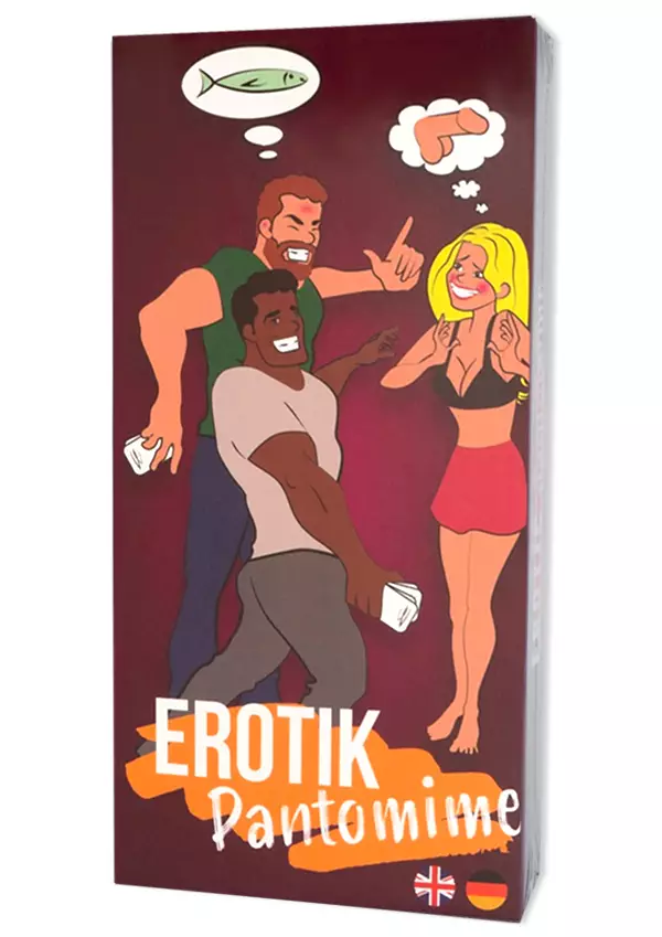 Pantomiimi Eroottinen Peli on todella hauska ja ehdoton bileiden ohjelmanumero. Selitä sanoja näyttelemällä. Aiheita neljästä eri ryhmästä "fetissi ja tuhmat", "lelut ja alusvaatteet", "esileikki" ja "sekalaiset". Peli on saksaksi ja englanniksi mutta jos kielet eivät suju, käytä netin sanakirjaa!
