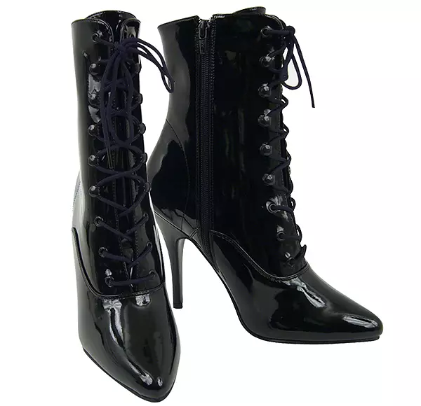 Upeat Pleaser nilkkurit nyöreillä. Sivulla vetoketju joten nyöritystä ei tarvitse avata lainkaan jalkaan laitettaessa. Korko 12,5cm