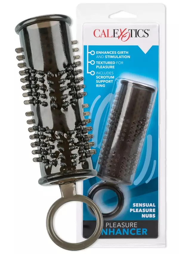 Pleasure Enhancer holkki lisää paksuutta penikseen ja se pysyy hyvin paikoillaan kivesten taakse tulevan renkaan avulla. Pinnalla olevat nystyrät lisäävät kumppanisi nautintoa. Nautinnon lisäksi holkki antaa myös kevyttä tukea. Materiaali joustava. Aseta holkki paikoilleen liukuvoidetta käyttäen, voimakkaan venyttämisen sijaan.