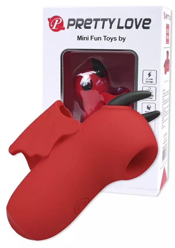 PrettyLove Magic Devil Klitoriskiihotin on hurja paholainen, joka ei valitettavasti onnistu pelottelemaan! Pikkuruinen, sormeen asetettava klitoriskiihotin joko omaan kivaan taikka pariskuntien yhteiseen kivaan. Söpö ulkomuoto kätkee sisälleen todella tehokkaan toiminnon. PrettyLove Magic Devil Klitoriskiihotin värisee ja suuaukko ikään kuin koputtaa paineaallon avulla klitoristasi. Tämä on yllättävän tehokas! Lisäksi paholainen antaa kevyitä sähköimpulsseja sarvistaan! Sähköimpulsseissa on yksi voimakkuus, mutta seykkii samaan tahtiin moottorin kanssa. Ihon tulee olla hieman kostea ja molempien sarvien koskettaa yhtä aikaa. Voit siis nauttia klitoriksen "koputuksesta" ja välillä kääntää paholaista niin, että sarvet koskettavat kehoasi. Macgic Devlin siivet muodostavat lenkin, joten se pysyy hyvin sormessa kiinni. Muista vesipohjainen liukuvoide.