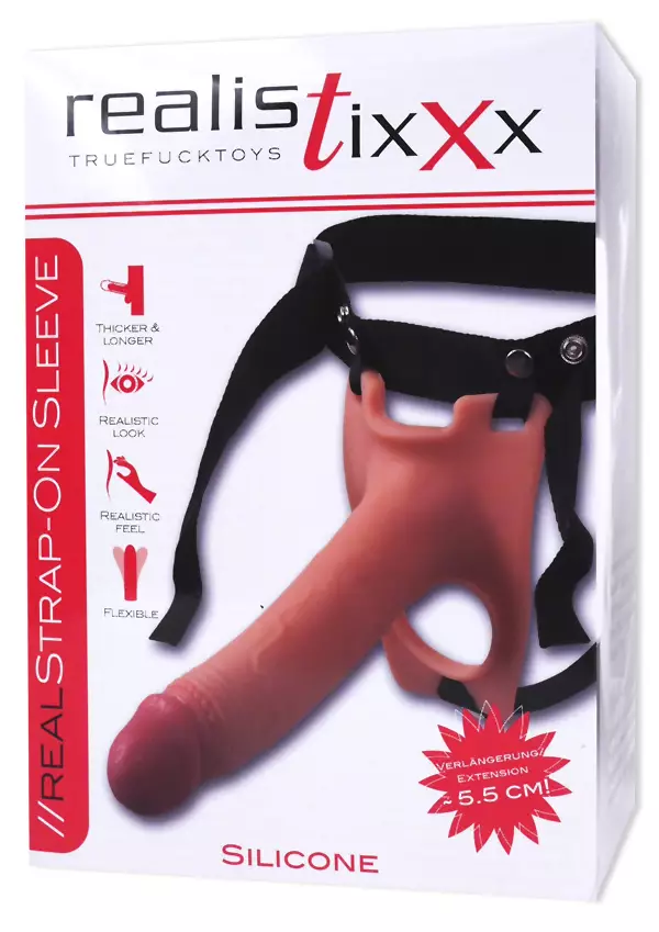 Realistixxx Strap On Penisjatko sopii moniin tarpeisiin! Hihnojen avulla puettava penisjatke antaa lisää pituutta noin 5,5cm ja hieman paksuutta. Tämä penisjatke toimii loistavasti myös potenssitukena ja antaa apua erektioongelmiin. Pehmeä, mutta kuitenkin tarpeeksi jämäkkä materiaali ja tiukka tunneli. Penisjatkeen kärki on erityisen pehmeä! Muista asettaa jatke paikoilleen liukuvoiteen avulla. Realistixxx Strap On Penisjatkossa on aukko kiveksiä varten ja irroitettavat hihnat, näiden avulla se pysyy hyvin paikoillaan kovassakin menossa. Muotoilun ansiosta dildo liikkuu luonnollisesti kehon mukana.