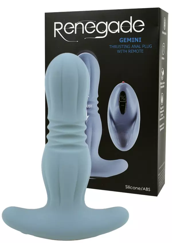 Renegade Gemini Anuskiihotin värisee syvällä sisälläsi seitsemällä eri rytmillä. Lisäksi se tekee työntöliikettä, jotta nautintosi olisi täydellinen. Ohjelmien vaihto tapahtuu kätevästi mukana tulevalla kaukosäätimellä. Anustapin pinta on laadukasta silikonia ja varsi napakka. Kannan kärjet ovat hieman pehmeät. Renegade Gemini Anuskiihotin on ladattava ja kauko-ohjain toimii yhdellä AAA paristolla.