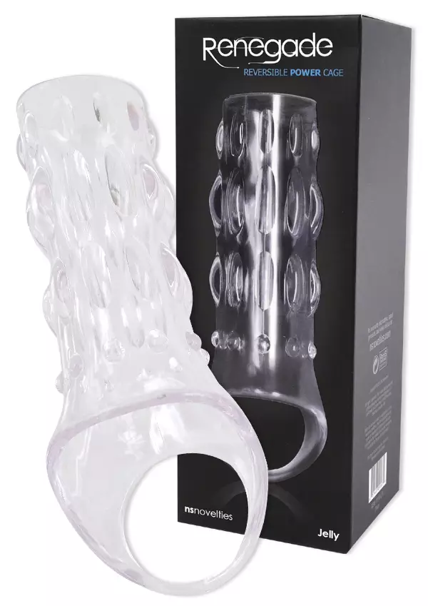 Renegade Rev Power Cage on kristallinkirkas ja ihanasti nystyröity holkki peniksen päälle. Lisää nautintoa molemmille. Pysyy hyvin paikoillaan. Materiaali pehmeää ja joustavaa TPE. Pituus 15cm. Halkaisija 40mm.