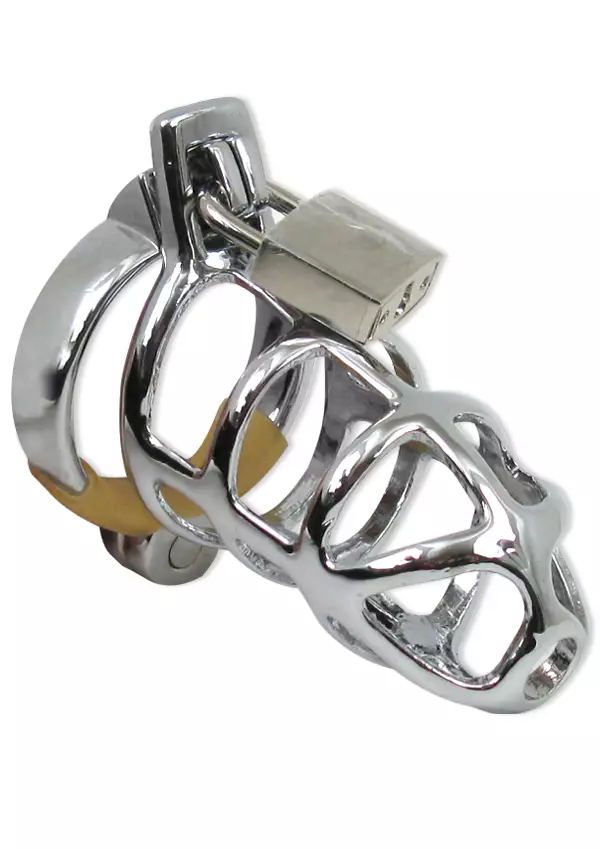 Metallinen siveysvyö. Kivesten taakse tulevia renkaita on kaksi kappaletta, joiden halkaisijat ovat 45mm ja 50mm. Saranan ympärillä pehmuste, jotta iho tai karvat eivät joudu saranan väliin. Peniksen ympärille tulevien renkaiden halkaisija max. 35mm. Mukana kahdet avaimet.