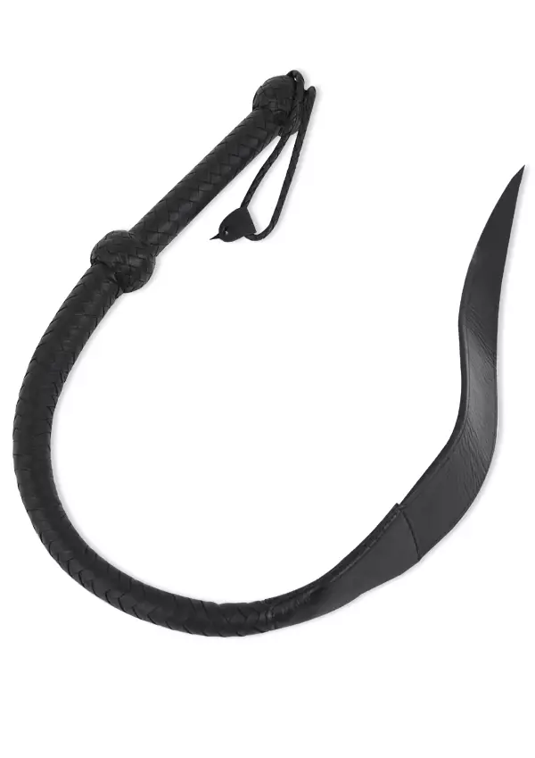Leveäkärkinen ruoska, joka on kauniisti ja huolella käsin punottu. Hamppuköysisydän, jonka päällä kangasta ja vasta sitten huolellisesti punottu nahkaa. Nämä kerrokset tekevät ruoskasta erittäinlaadukaan ja saa vastinetta rahoillesi! Käsityöstä johtuen pituus voi hieman vaihdella. Kahvan pituus noin 20cm, punotun varren pituus noin 43cm ja kärjen pituus noin 30cm. Pituus yhteensä noin 93cm. Mukana säilytyspussi. Materiaali punotussa osassa aitoa nahkaa ja kärki keinomateriaalia.