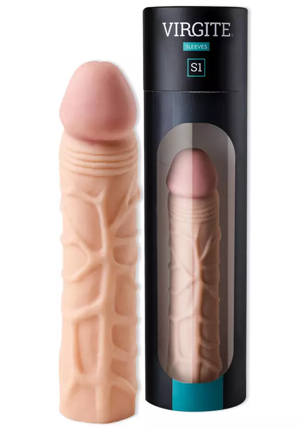 S2 Realistic Sleeve Penisjatkeen avulla saat heti lisää pituutta penikseen! Todella miellyttävän tuntuisesta, pehmeästä ja joustavasta materiaalista valmistettu penisjatke. Lisää pituutta, mutta ei juurikaan paksuutta. Käytä liukuvoidetta apunasi, kun asetat jatkon paikoilleen. Pesun jälkeen suosittelemme talkitsemaan jatkon, jotta materiaali pysyy pitkään pehmeänä.
