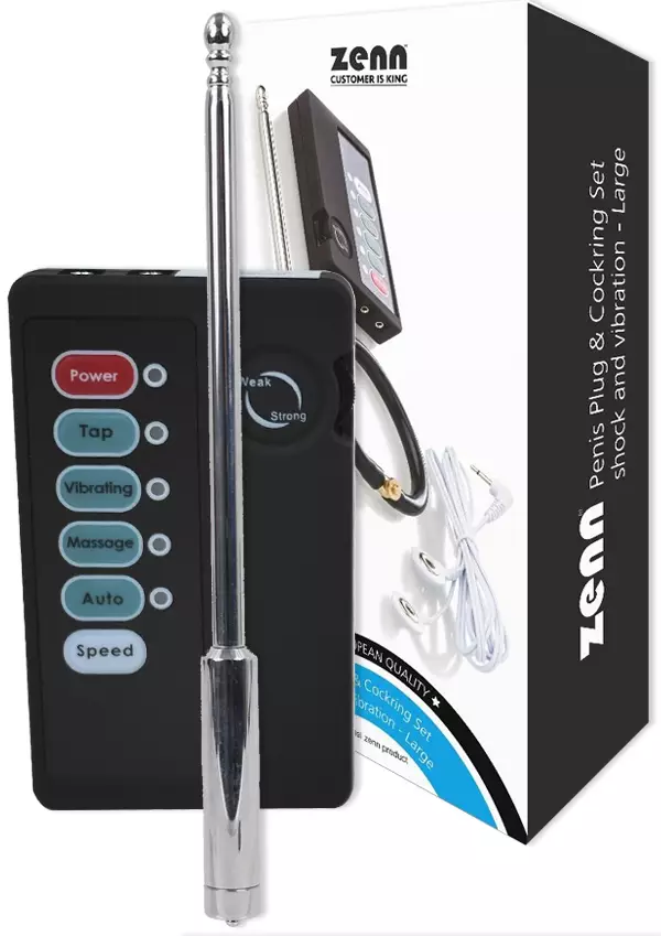 Täydellinen setti peniksen sisäiseen stimulointiin ja mahtaviin orgasmeihin. Metallinen sondi toimii kahdella eri tapaa. Kun laitat siihen yhden AAA pariston, se alkaa heti värisemään, kun kytket sen kiinni ohjausyksikköön, se antaa myös ihanat sähköiskut. Muita käyttää vesipohjaista likuvoidetta! Sekä penisrenkaan että sondin tulee koskettaa kehoa yhtäaikaa. Voit leikata penisrenkaan juuri itsellesi sopivaksi. Ohjausyksikössä on kaksi 2,5mm lähtöä, joten voit käyttää kahta lisälaitetta tai laiteparia yhtäaikaa ja esim. Rimban lisälaitteet sopivat tähän ilman adapteria. Erilaisten adapterien avulla saat minkä tahansa lisälaitteen liitettyä. Sähköimpulssejen taajuutta saat vaihdeltua ja löydät varmasti mieleisesi. TAP - antaa yksittäisiä sähköiskuja. VIBRARING - antaa nopeita sähköimpulssejaa peräkkäin. MASSAGE - antaa intensiivisempää tunnetta. AUTO - laite käy läpi valmiin ohjelman. SPEED - valitse kuinka nopeasti se kytkee sähköiskut päälle ja pois. Voimakkuutta saa säädettyä laitteen sivussa olevasta pyörästä. Käynnistä ja sammuta painamalla vitrakytkintä 3 sekuntia. Poista paristot (3xAAA) käytön jälkeen.