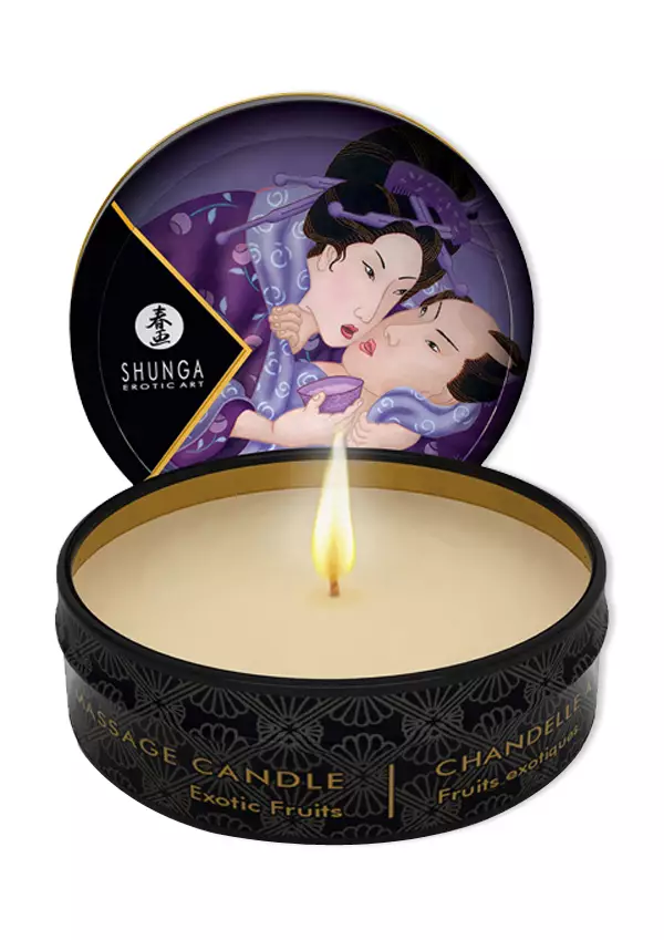 Shunga Hierontaöljykynttilä Libido tuoksuu eksoottisilta hedelmiltä. Soijapohjainen ja sisältää vain luonnollisia öljyjä. Hierontaöljykynttilää voidaan käyttää joko tunnelman luojana tai hierontaöljynä intiimissä hieronnassa. Sytytä kynttilä ja anna sen palaa 20 minuuttia. Odota, että koko pinta on muuttunut nestemäiseksi. Sammuta liekki ja kaada pieni määrä haaleaa öljyä kämmenellesi. Hiero kumppanisi nautinnon huipulle! 30ml. Paloaika jopa 7 tuntia.