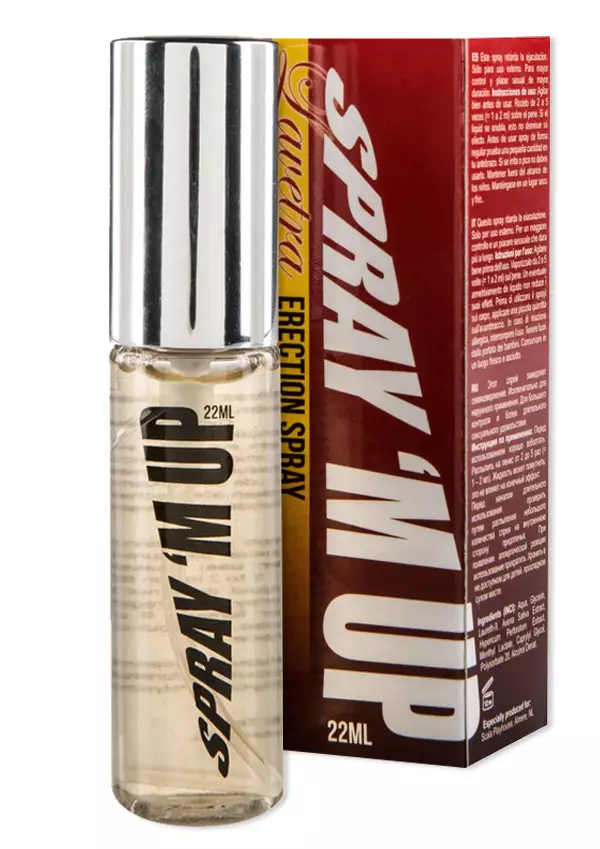 Spray 'M Up Erektiosuihkeen koostumus vilkastuttaa pintaverenkiertoa ja lisää tuntoherkkyyttä, jolloin erektio tuntuu voimakkaammalta ja intiimihetket kestävät pidempään. Erektiosuihkeen ansiosta voit saada lisää varmuutta ja kestävyyttä. Helppokäyttää, vain pari suihkausta tehostesuihketta penikseen ennen H-hetkeä. Luonnolliset ainesosat mm. chilihedelmäuute, glyseriini ja sitruunahappo. Erektiosuihke sopii kaikille miehille, jotka haluavat tehostaa intiimihetkiään. Lätevä 22ml suihkepullo mahtuu vaikka taskuun.