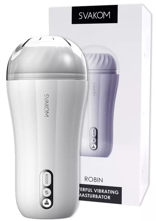 Svakom Robin Masturbaattori hellii heppiäsi ja vatkaa kassisi tyhjiksi aina uudelleen ja uudelleen. Uskomattoman pehmeä, aitoa ihoa muistuttava sisus sekä ergonomisesti muotoiltu kotelo, tekevät tästä miellyttävän käyttää. Tehokkaassa vibrassa viisi eri ohjelmaa, josta voit helposti valita suosikkisi. Ainutlaatuisella BOOST asetuksella viimeistelet nautintosi hetkessä! Svakom Robin masturbaattori on ladattava ja tarvittava USB latausjohto tulee tietenkin mukana. LED näyttö näyttää mm. akun varaustason. Svakom Robin ei ole vesitiivis, mutta sisus on helppo irroittaa pesua varten. Muista liukuvoide!