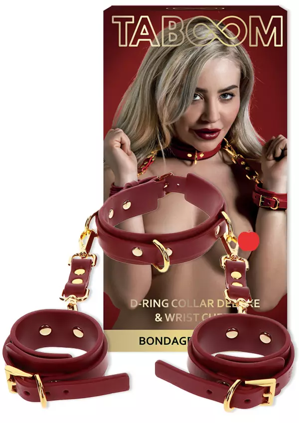 Taboom Kaulapanta ja Käsikahleet tuovat hieman luksusta seksielämäänne. Vegaaninen materiaali ei tietysti ole sama nahka, mutta se on ihanan sileä ja miellyttävän tuntuinen ihoa vasten. Kaunis punainen ja kullanväri saa tämän näyttämään todella upealta. Käsikahleet ovat irroitettavat ja voit kiinnittää joka kaulapantaan tai ihan mihin ikinä keksitkin.