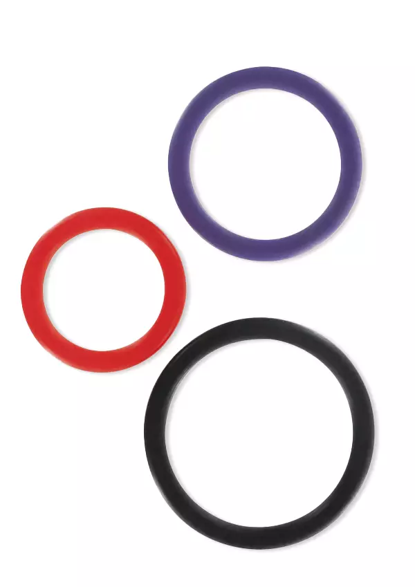 ToyJoy Triple Rings Penisrenkaat ovat hieman joustavat. Paketissa kolme eri kokoista ja väristä rengasta. Materiaali on keholle turvallista, silikonin kaltaista.