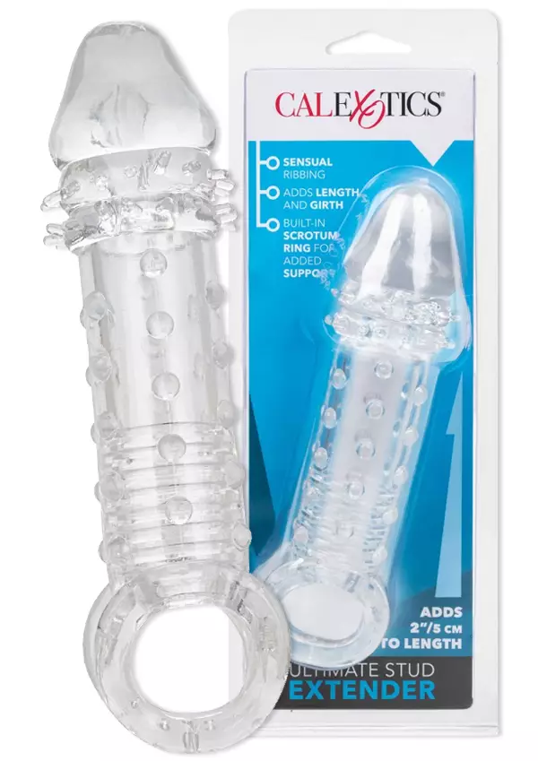 Ultimate Stud Extender jatkolla saat 5cm lisää pituutta penikseen. Penisjatko pysyy hyvin paikoillaan kivesten taakse tulevan renkaan avulla. Pinnalla olevat nystyrät lisäävät tuplasti kumppanisi nautintoa. Joustavan materiaalin ansiosta sopii lähes kaikille. Aseta jatko paikoilleen liukuvoidetta käyttäen, voimakkaan venyttämisen sijaan.