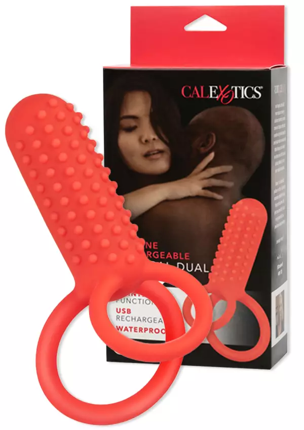 Vertical Dual Enhancer Penisrengas vie nautintonne aivan uudelle tasolle! Kaksi rengasta, toinen peniksen ja toinen kivesten ympärille. Renkaat puristavat mukavasti ja saa sinusta entistä kestävemmän. Vertical Dual Enhancer Penisrengas pysyy myös hyvin paikoillaan. Nystyröidyssä klitoriskiihottimessa on tehokas vibra, joka sykkii ja värisee 12 eri ohjelmalla. Lisäksi siinä on toiminto, joka muistaa viimeksi käyttämäsi ohjelman. Vesitiiviyden ansiosta voitte leikkiä vaikka kylvyssä! Penisrengas on ladattava ja tarvittava USB-latausjohto tulee tietenkin mukana. Käytä aina liukuvoidetta asettaessasi rengasta paikoilleen turhan venyttämisen sijaan.