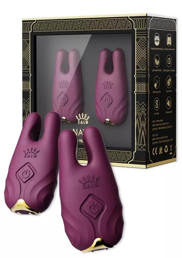 Laadukkaat nännipuristimet, jossa molemmissa erikseen ohjattava vibra.